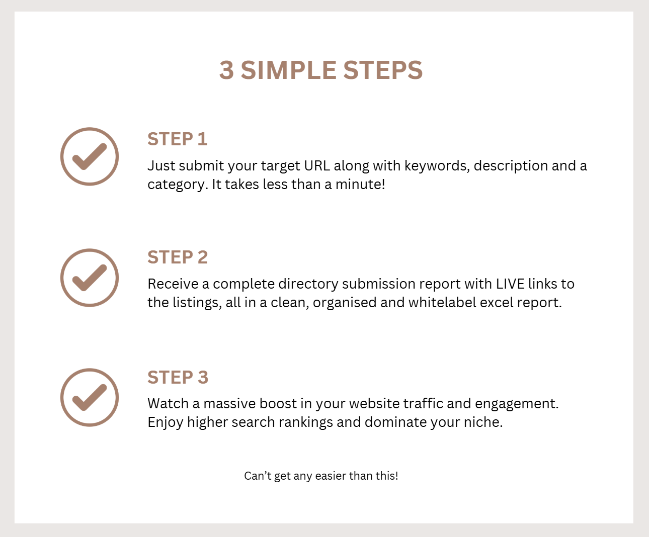Get your URL listed in Top 100 Web Directories, it's a 100% done-for-you service. All you do is provide info and within 24 hours, the magic happens!